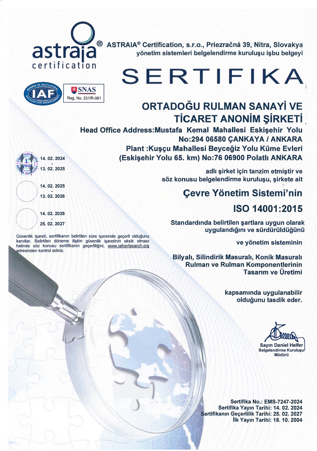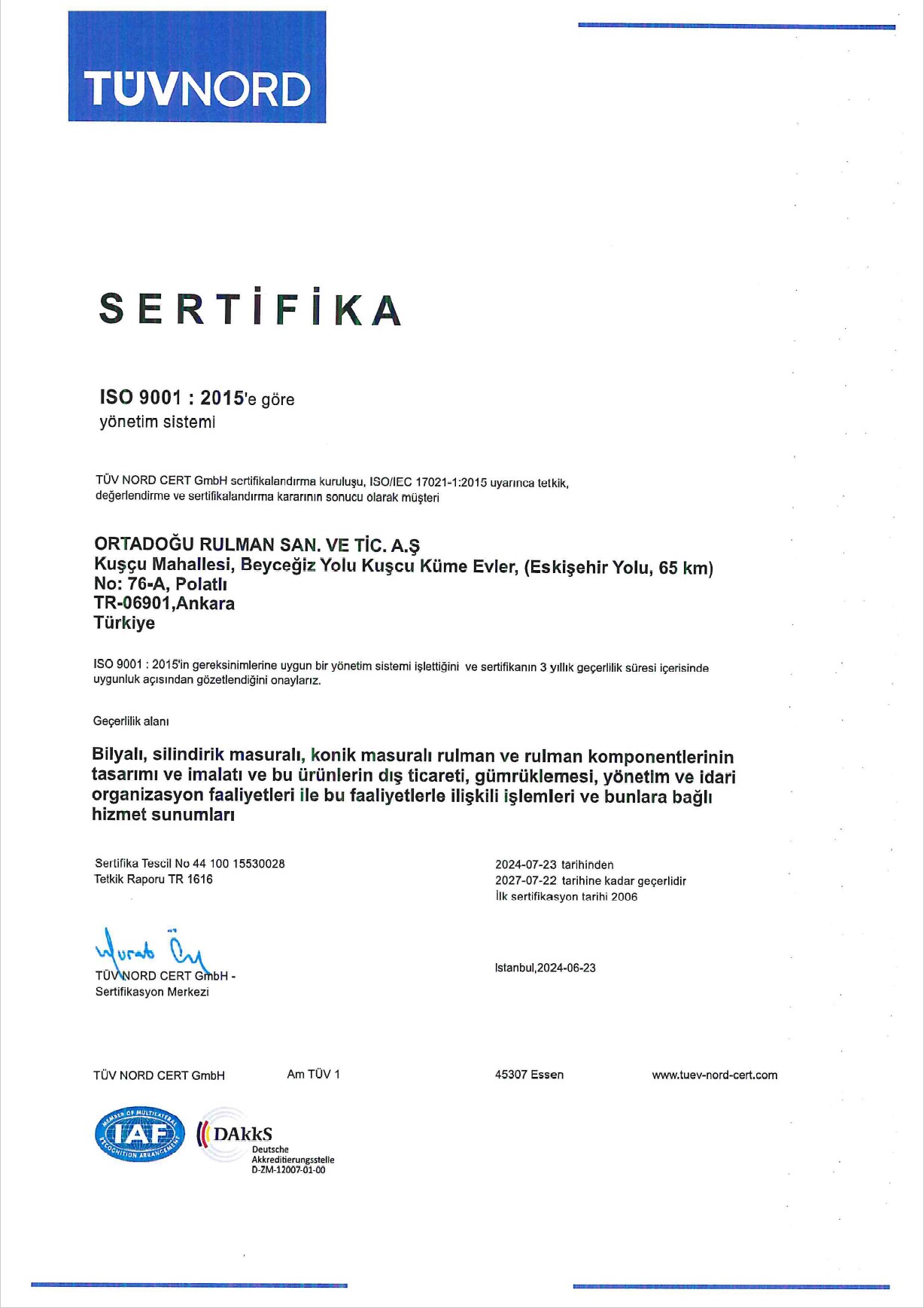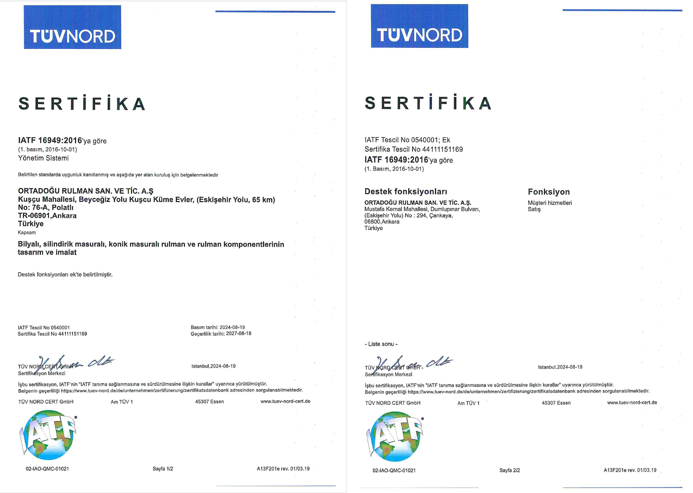 ISO 9001 ve IATF 16949 kalite yönetim sistemleri sertifikası sahibidir.