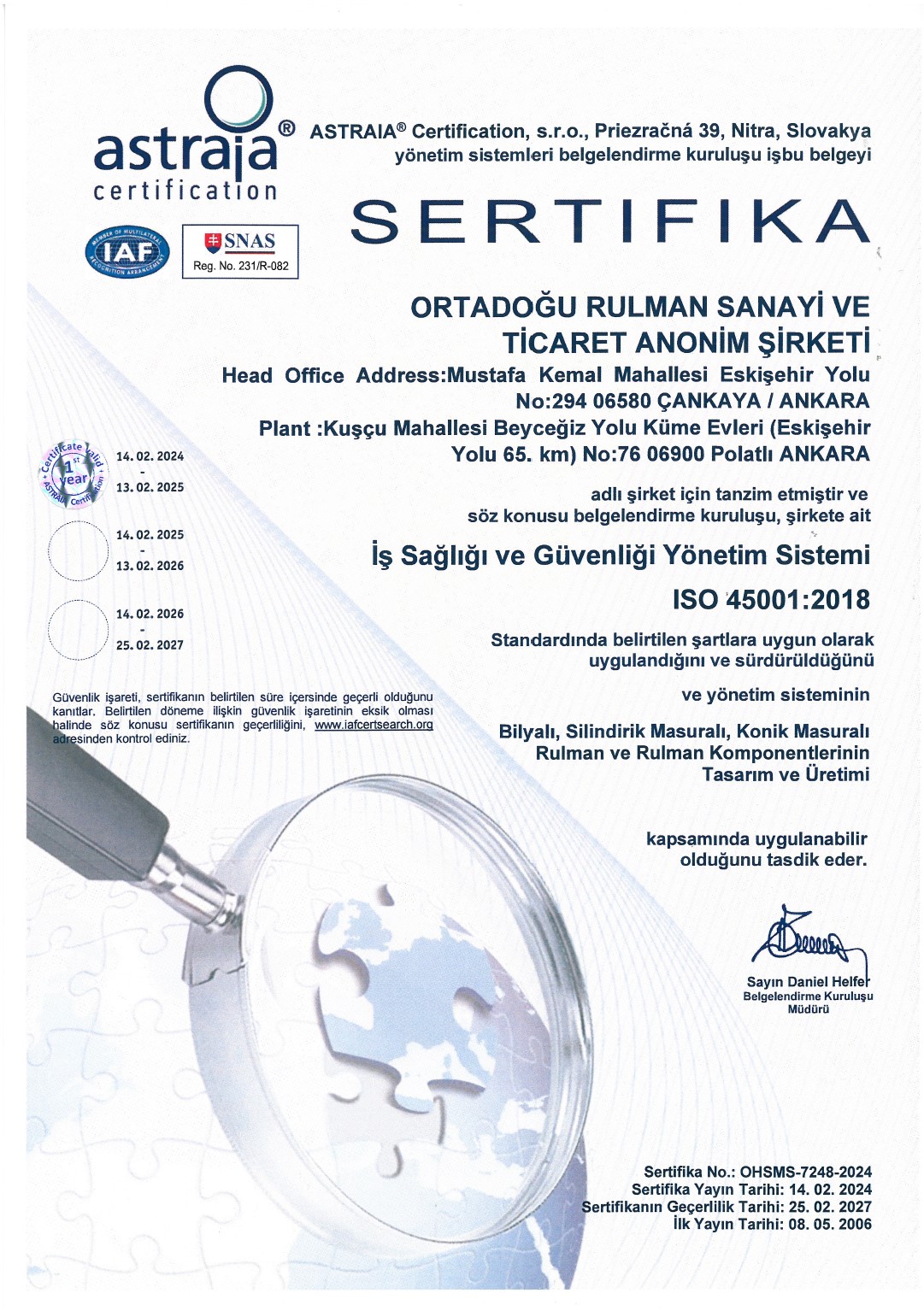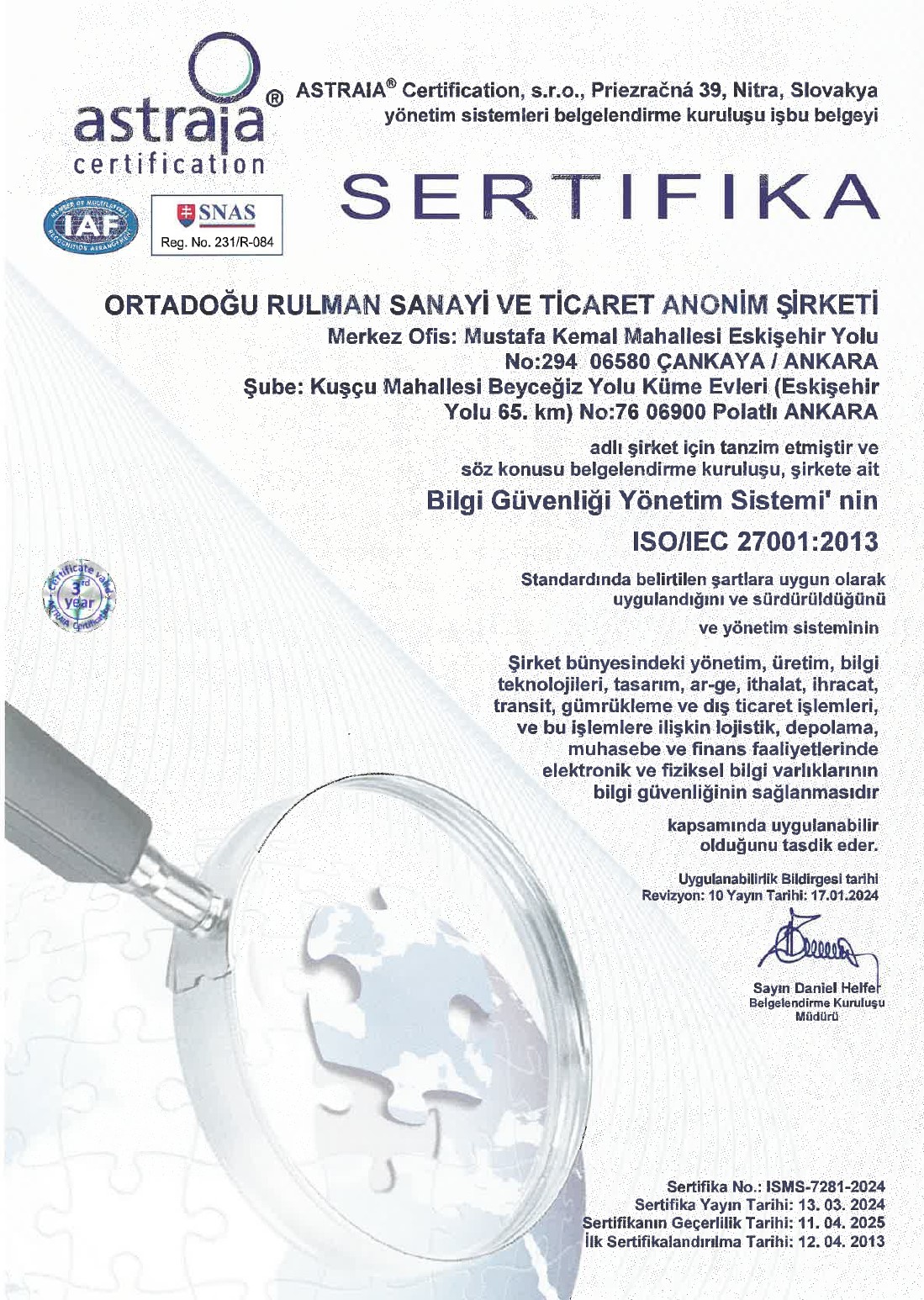 ve güvenliği yönetim sistemleri sertifikaları sahibidir.
